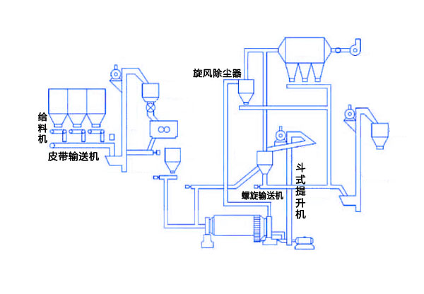 石膏粉生產(chǎn)線主要加工流程為:石膏礦石—振動給料機-破碎機-斗式提升機-原料倉-斗式提升機-沸騰爐(配除塵器)-斗式提升機-輸送機-儲存輸送-成品。其中對石膏礦石的輸送提升是整個石膏粉生產(chǎn)線重要的環(huán)節(jié)。