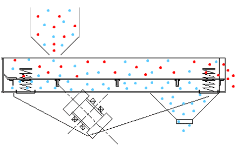 利用振動(dòng)電機(jī)激振作為振動(dòng)源,使物料在篩面上呈跳躍式直線向前運(yùn)動(dòng),物料從給料機(jī)均勻地進(jìn)入篩分機(jī)的進(jìn)料口,通過多層篩網(wǎng)產(chǎn)生數(shù)種規(guī)格的篩上物、篩下物、分別從各自的出口排出。