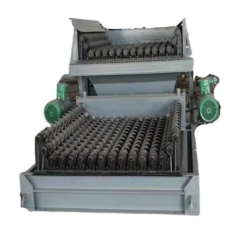 BS系列礦用波動(dòng)篩是火力發(fā)電廠輸煤系統(tǒng)的重要設(shè)備之一,在冶金、建材、化工、煤炭等系統(tǒng)也可廣為利用。波動(dòng)篩是由多根平行排列的滾軸組成,一般為6~10根滾軸,多達(dá)20根滾軸。滾軸上裝有梅花形篩片。滾軸由電動(dòng)機(jī)和減速器經(jīng)鏈輪或齒輪帶動(dòng)滾軸旋轉(zhuǎn)。轉(zhuǎn)動(dòng)方向與物料方向相同。